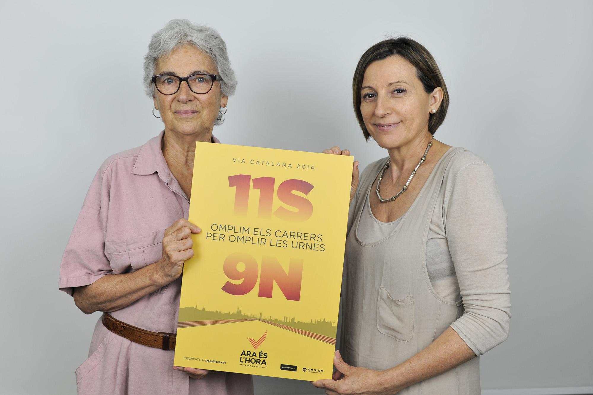 Múriel Casals i Carme Forcadell ens presenten el cartell de la "V" catalana, amb el lema "Omplirem els carrers per omplir les urnes".